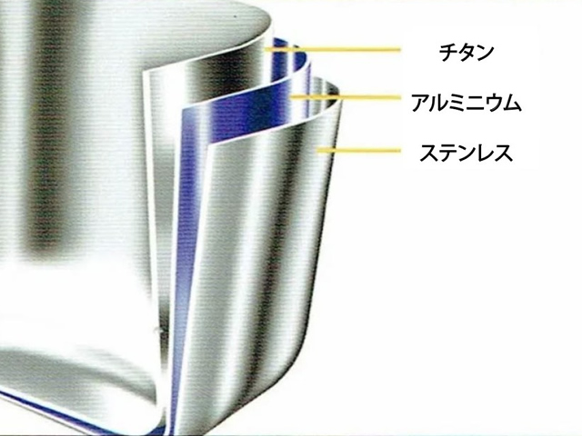 ■材質:クラッド材(チタン・アルミニウム・18-0ステンレス)